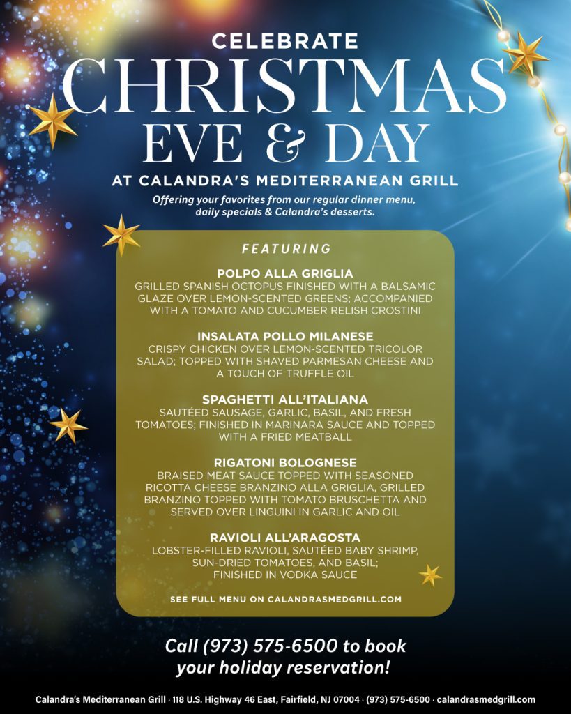 Call (973) 226-8889 Opt. 1 to book your holiday reservations today!