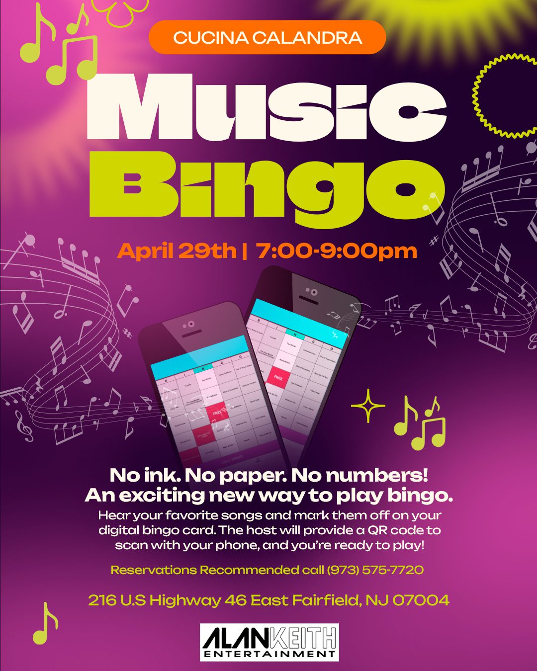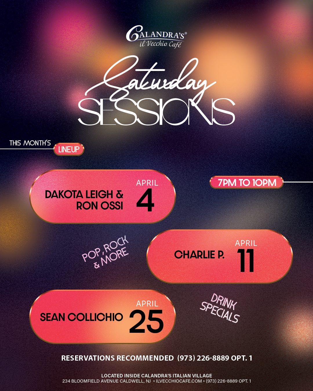 Reservations Recommended call (973) 226-8889 Opt. 1