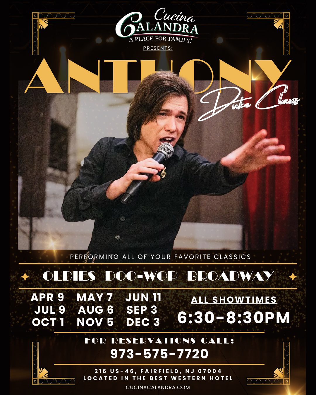 Call for reservations : (973) 226-8889 opt. 1