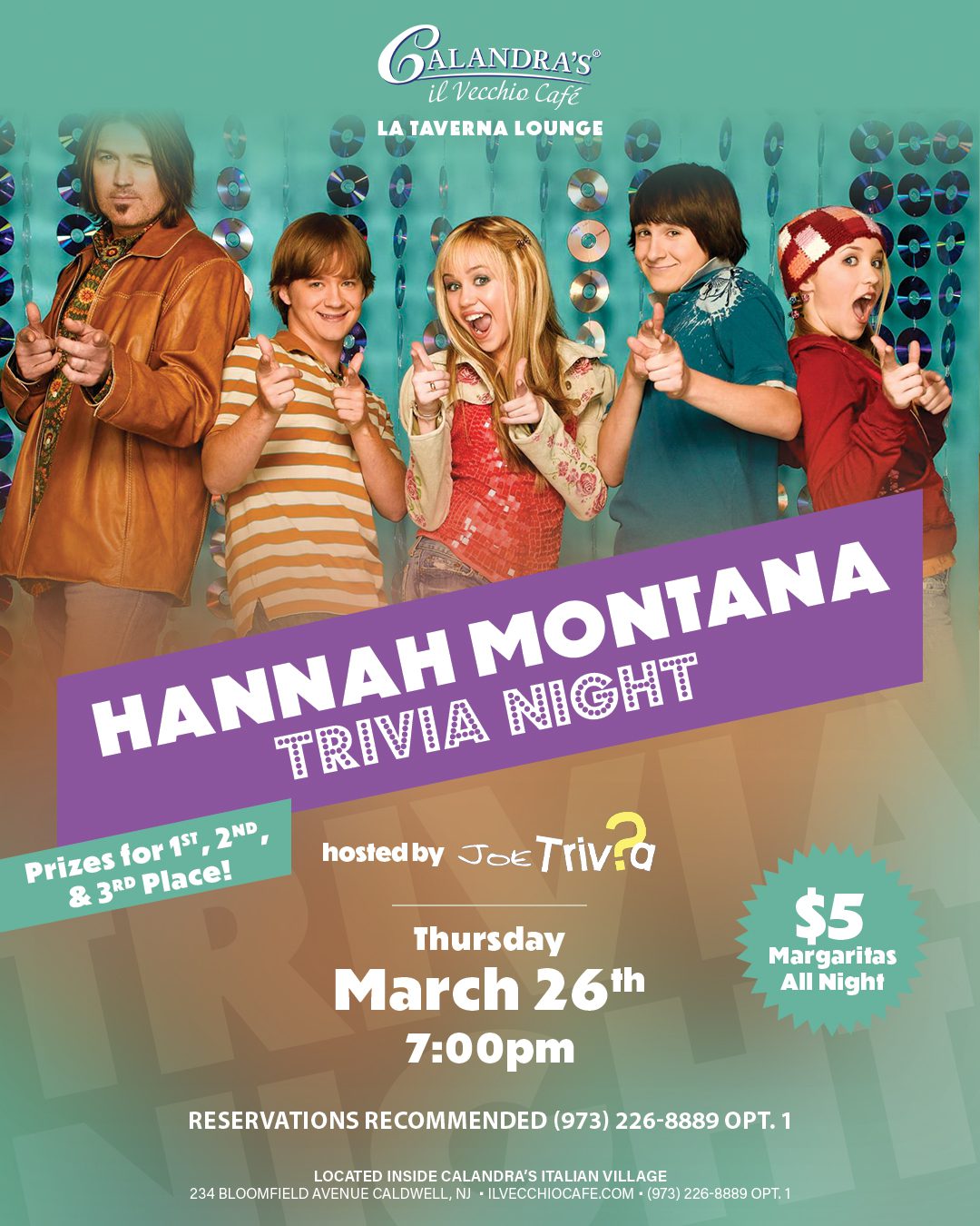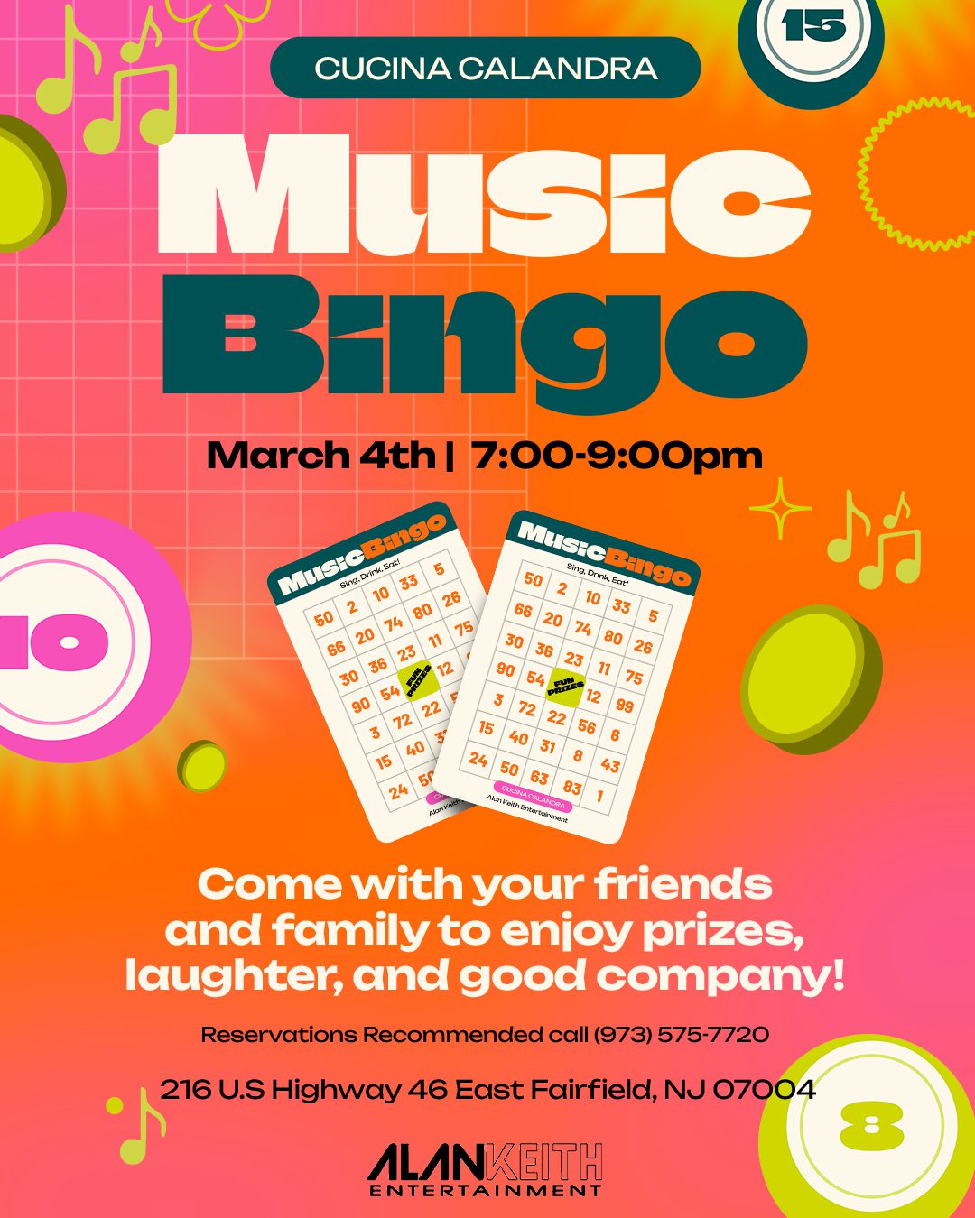 Reservations Recommended call (973) 226-8889 Opt. 1