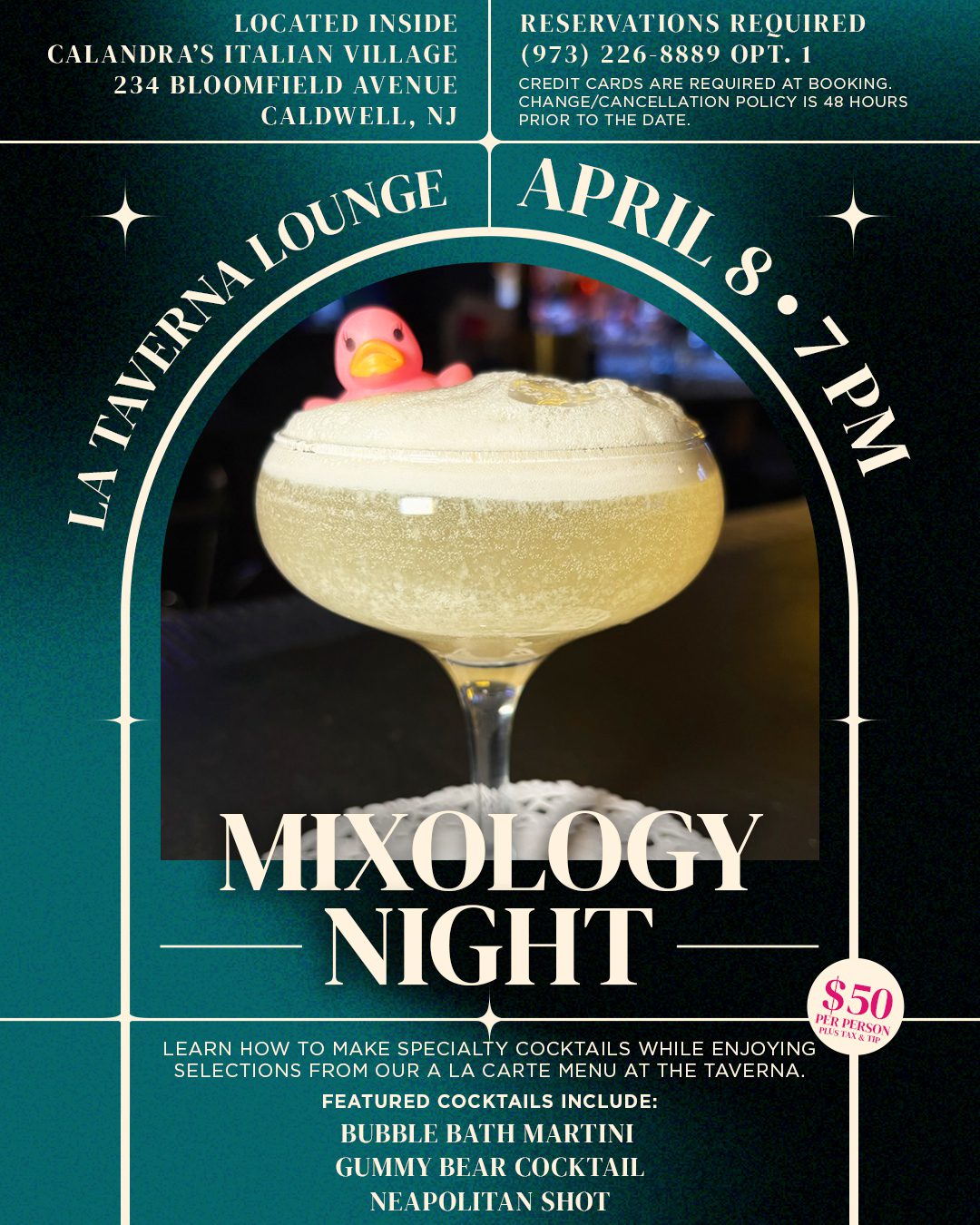 Located inside Calandra’s Italian Village • 234 Bloomfield Ave. Caldwell, NJ 07006